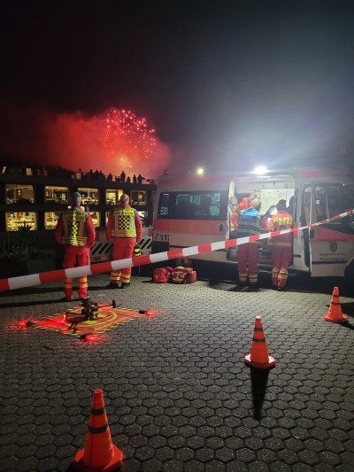 Bei der Veranstaltung drohen neben Brandgefahren auch Wassergefahren, die es erforderlich machen, Sicherheitswachen (hier Wasserrettungsdienst) einzurichten.