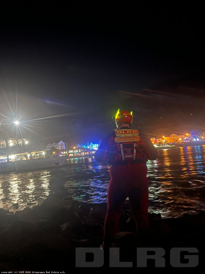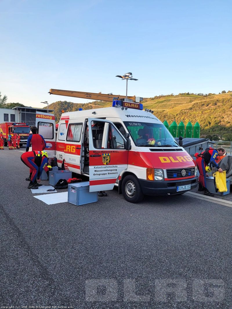 Zur schnellen Hilfe im Uferbereich positionierten sich zwei Strömungsrettertrupps der DLRG Rheinböllen und Simmern an den Rheintreppen und auf der Rheinterrasse. Auch der Brandschutz auf dem Wasser war abgesichert: Die Feuerwehren St. Goarshausen und Bingen unterstützten mit ihren Hilfeleistungslöschbooten, während die Besatzungen aus Werlau und St. Goar mit dem Mehrzweckboot St. Goar in Bereitstellung waren.